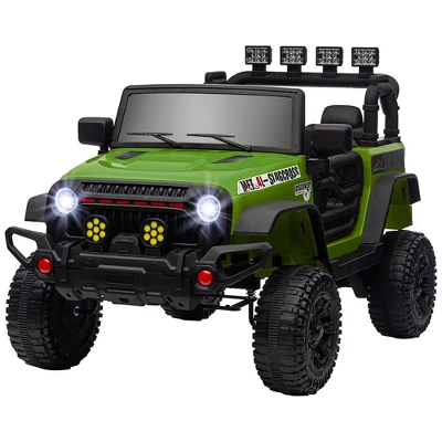 Unleash the fun with the Qaba 12V kids ride on truck, it features two motors and a cool SUV design. Equipped with a shock-absorbing system and a smooth, slow start for safe driving, this kid’s electric car offers three adjustable speeds via remote control. Plus, it includes music capabilities for a ride they can really rock out to.