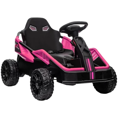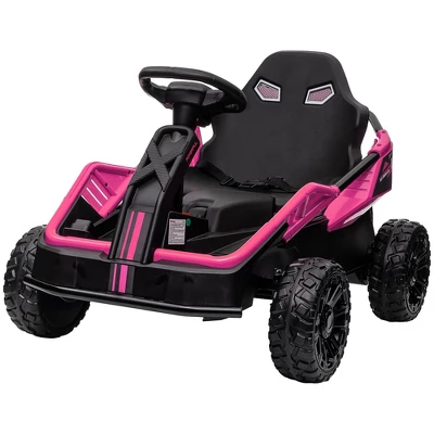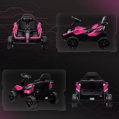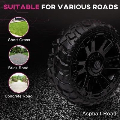 Race to the fun with the Qaba kid’s car featuring a remote. Outpace any adult’s stroll with its speedy 24V dual motors, gliding effortlessly on asphalt, grass, or cement. Featuring a remote control and manual driving via the steering wheel, this kid’s electric car offers multiple ways to play. The lights, horns, and music add extra joy to every ride. It ensures smooth rides with shock-absorbing rear wheels, slow start, and safety belt.