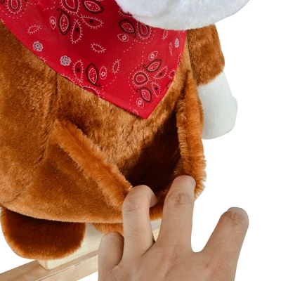 - SECURITY FIRST: the handles, back, and seat belt of this rocking horse make sure that your kids have some secure fun! The plush fabric on this horse covers the hard frame, so your little one can pretend in utmost comfort.