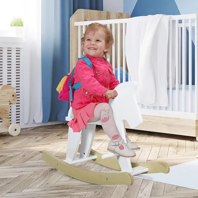 - HIGH-QUALITY STYLISH DESIGN: This kids rocking chair is built on a sturdy MDF structure and solid wood base which is lined with two curved rails to give the animal a forward and backward rocking motion.